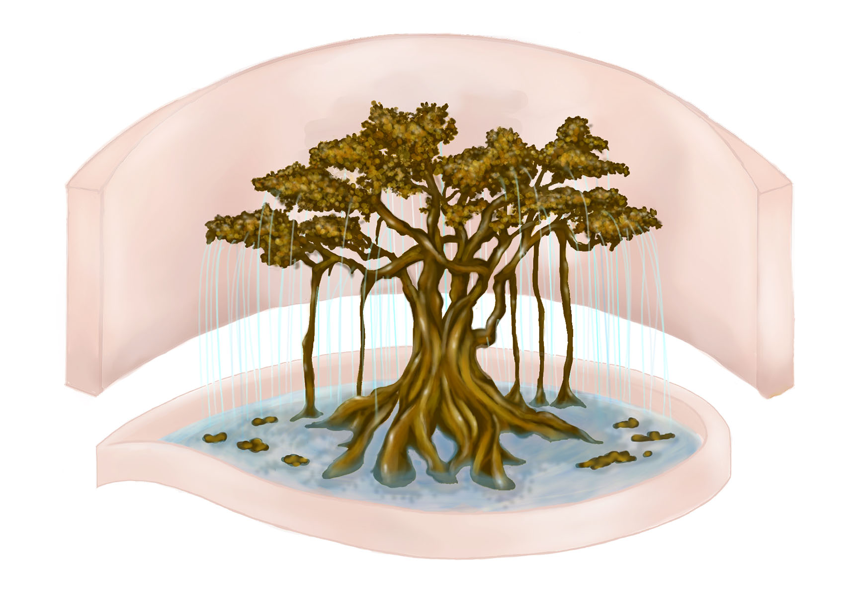 At the centre stands the Banyan Tree, the national tree of India, symbolising eternity. Its sprawling branches and aerial roots represent continuity and the connectedness of all living things. The Banyan Tree and accompanying Floral Sculptures will be sculpted in bronze. Water will weep gently down from its branches into the pond below, creating a symbolic and tranquil flow that echoes remembrance and peace.