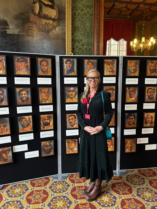 Artist Arabella Dorman reflected on the portraits at the centre of Great Faith: even when source photos were aged or torn, “the eyes were telling the story” — guiding how she painted courage, loyalty and faith. Her core message resonated with the room: Britain’s wartime armies were richly diverse — Muslim, Christian, Jewish, Hindu, Sikh and others — serving shoulder-to-shoulder; too many of those stories, especially Muslim stories, remain untold.